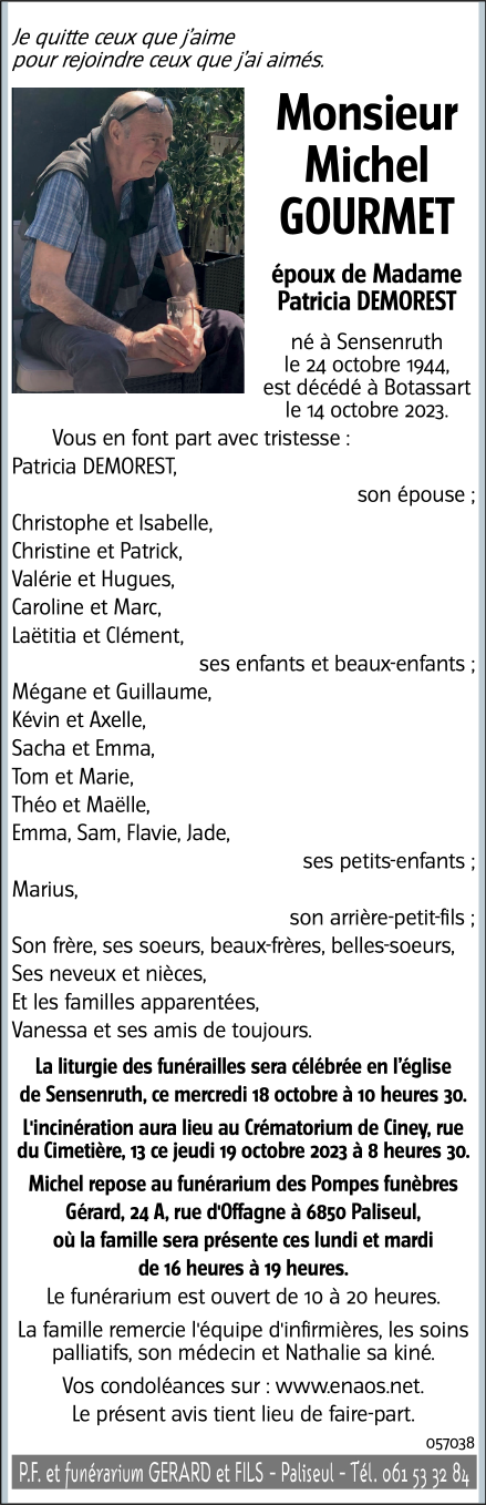 Décédé à Botassart (6833) le dimanche 15 octobre 2023 à l'âge de 78 ans