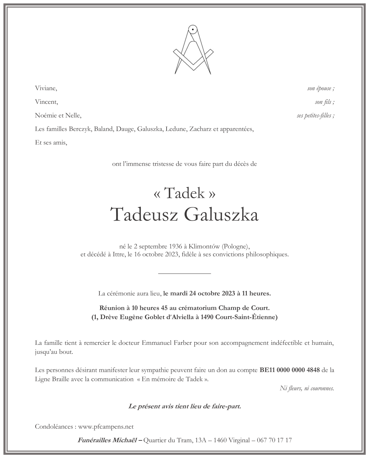 Overleden te Ittre (1460) op maandag 16 oktober 2023 op 87-jarige leeftijd