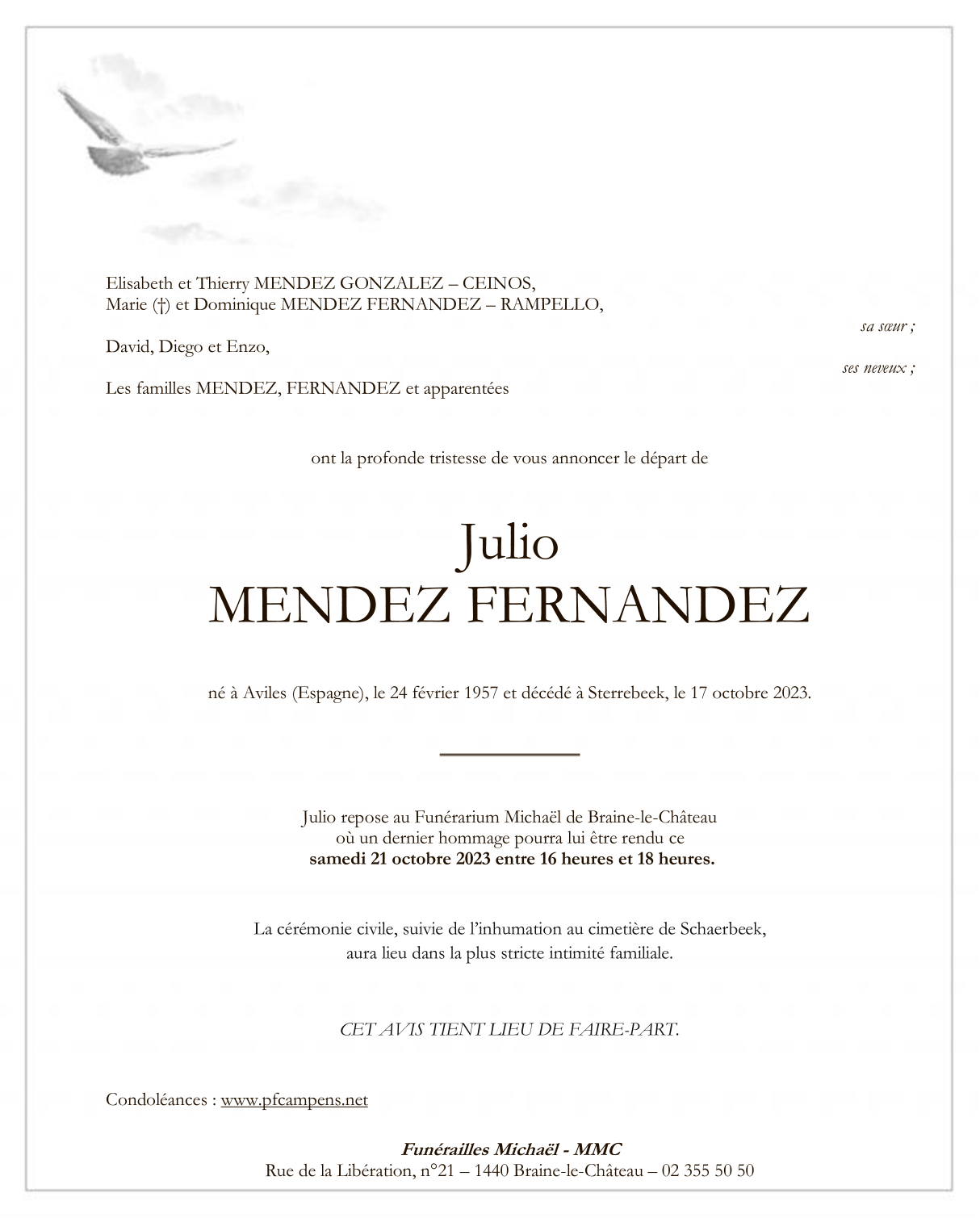 Décédé à Sterrebeek (1933) le mardi 17 octobre 2023 à l'âge de 66 ans