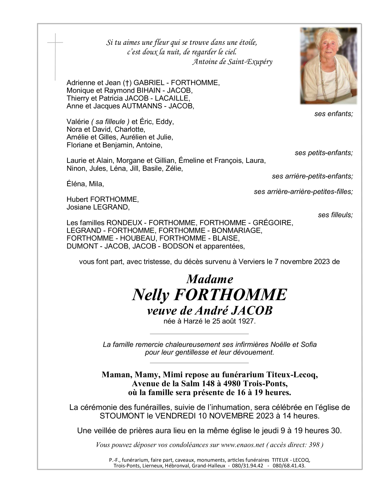 Décédée à Verviers (4800) le mardi 7 novembre 2023 à l'âge de 96 ans