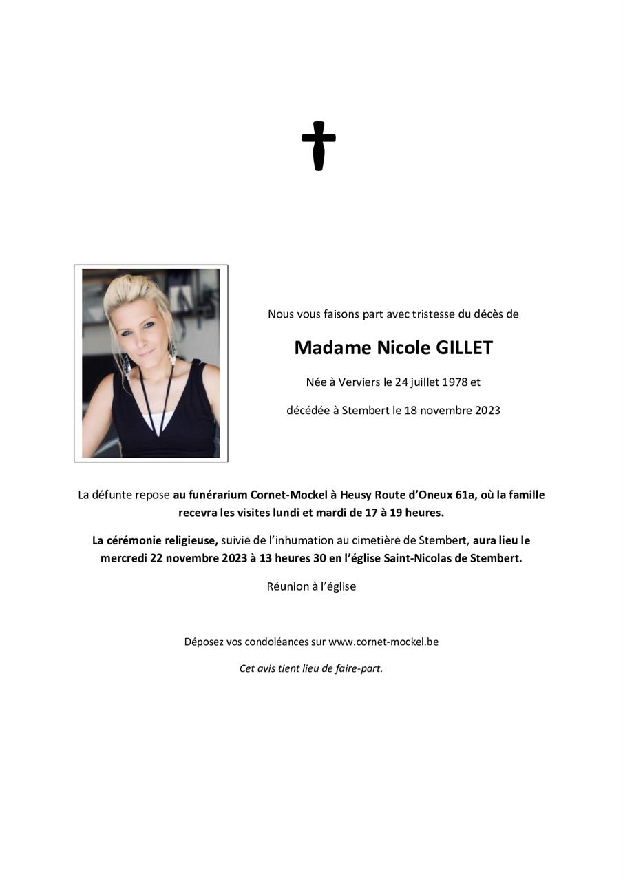 Fallecida en Stembert (4801) el sábado, 18 de noviembre de 2023 a la edad de 45 años