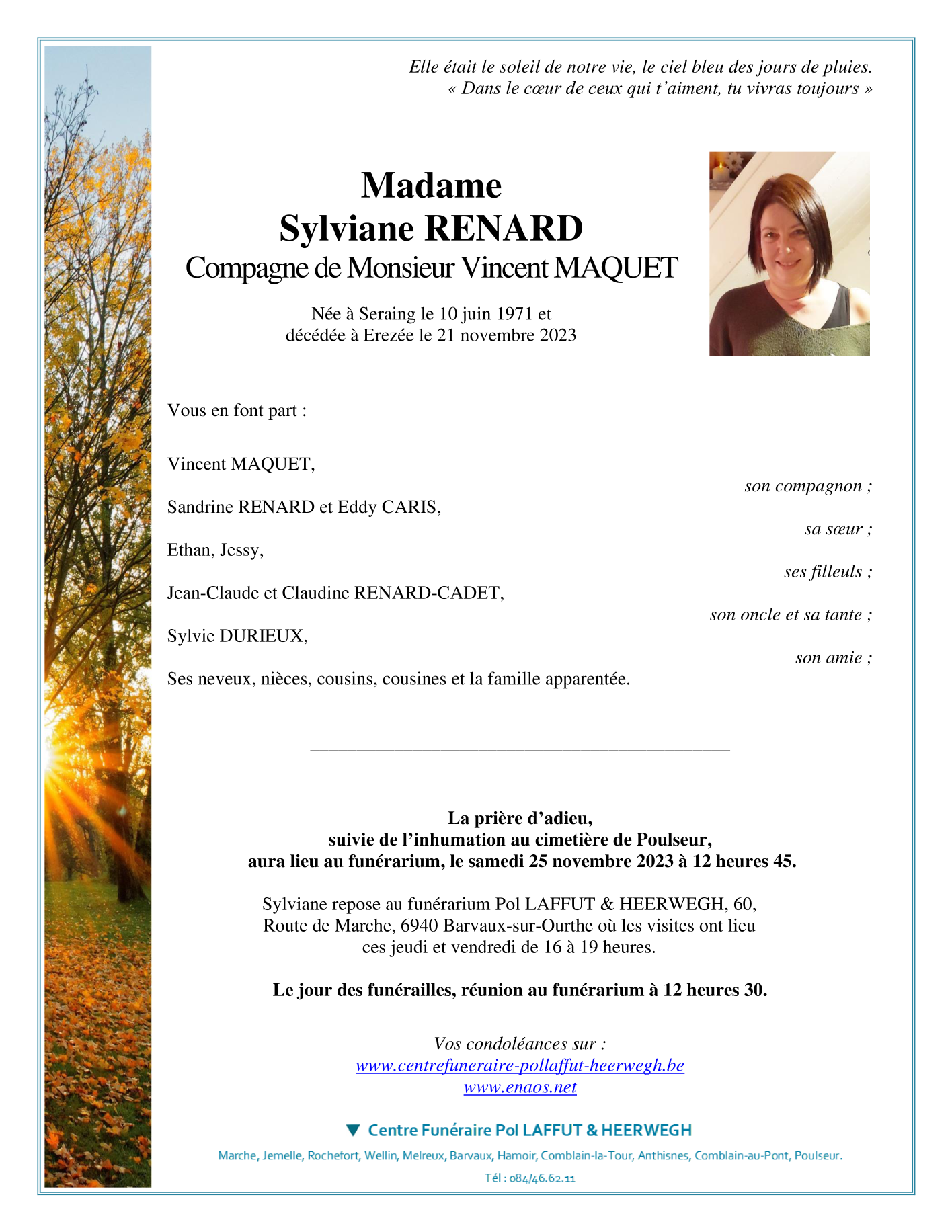 Died in Erezée (6997) on 21 November 2023 at the age of 52 years