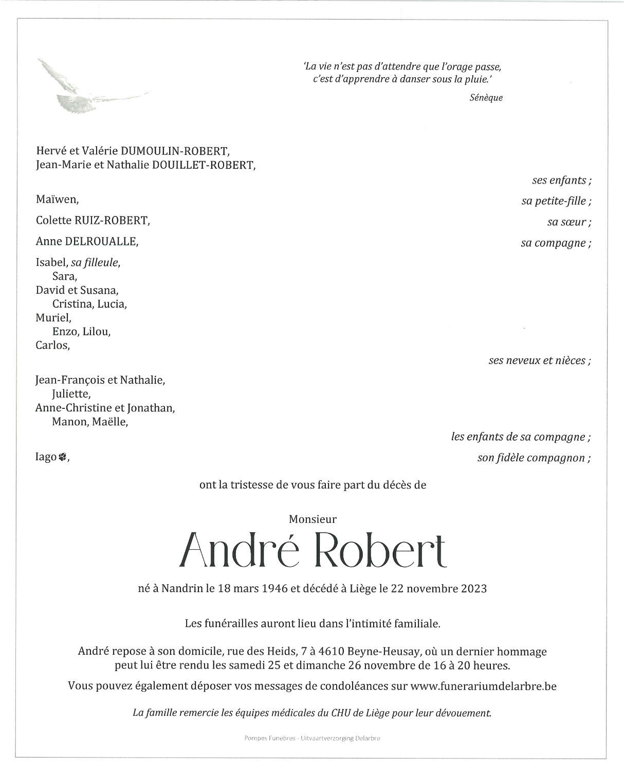 Décédé à Liège (4000) le mercredi 22 novembre 2023 à l'âge de 77 ans