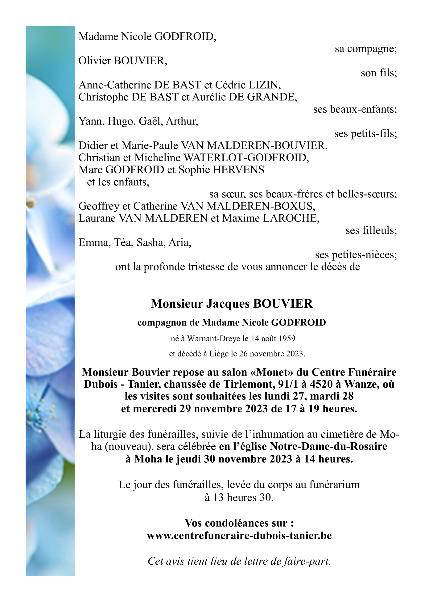 Décédé à Liège (4000) le dimanche 26 novembre 2023 à l'âge de 64 ans