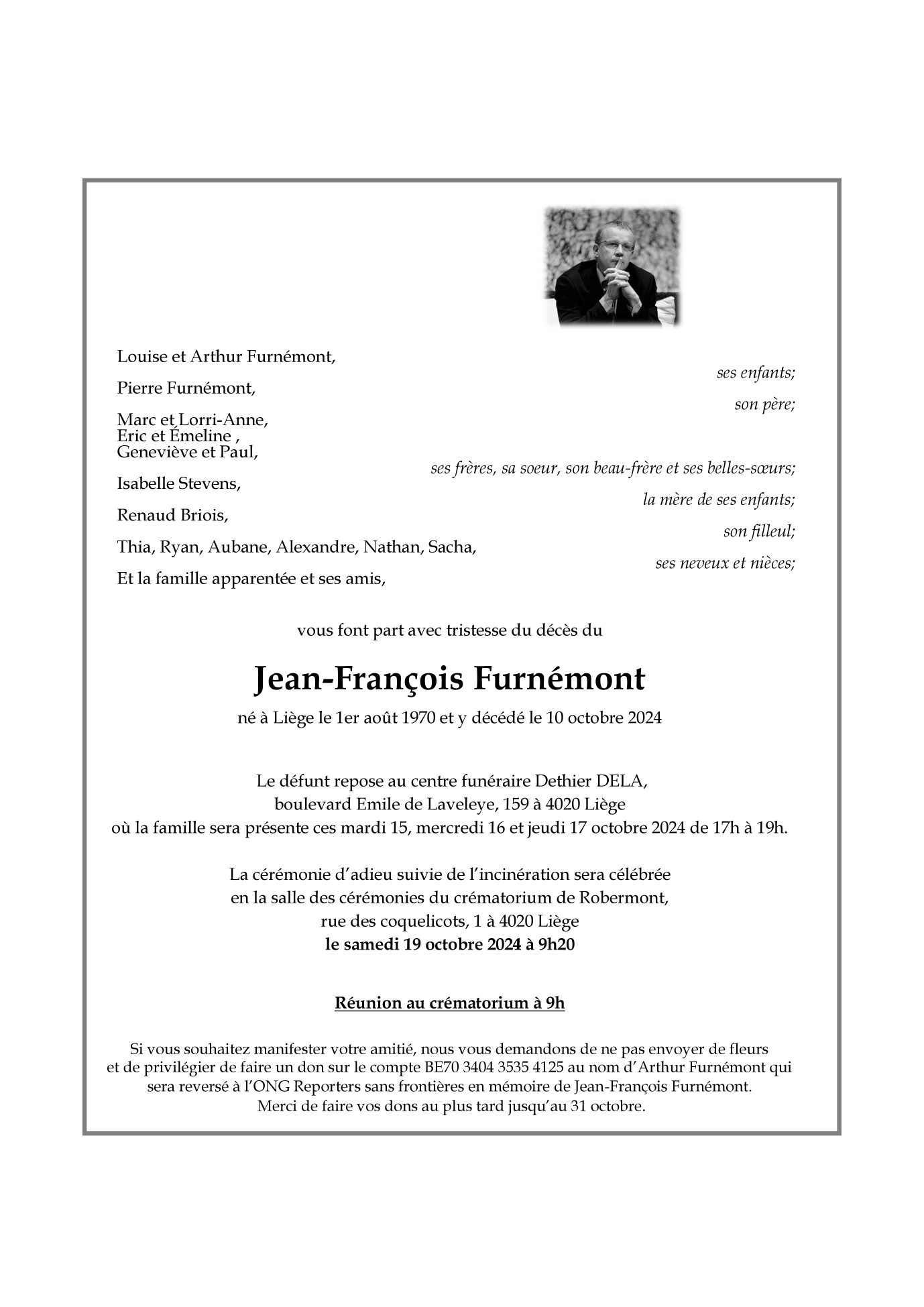 Died in Liège (4020) on 14 October 2024 at the age of 54 years