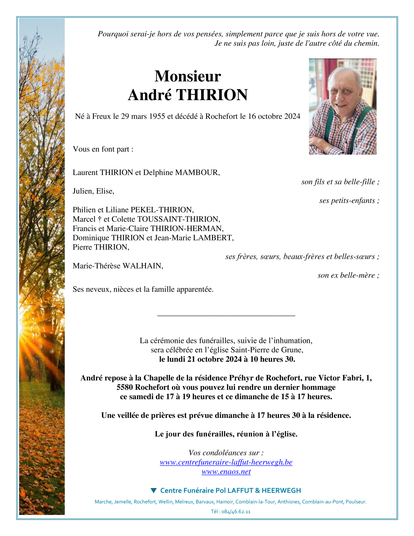 Died in Rochefort (5580) on 16 October 2024 at the age of 69 years