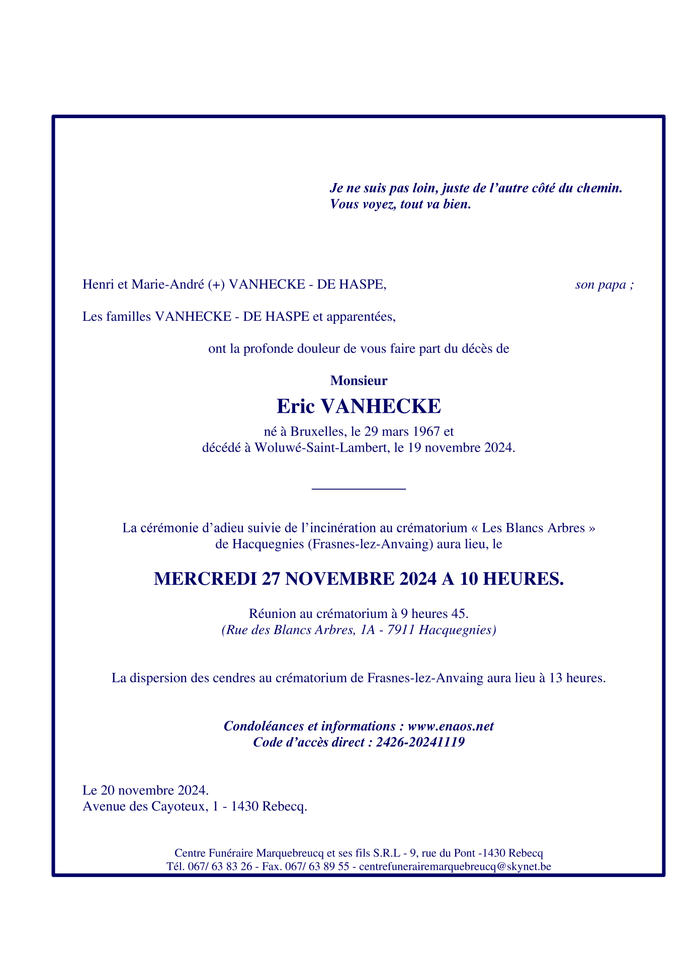 Fallecido en Woluwe-Saint-Lambert (1200) el martes, 19 de noviembre de 2024 a la edad de 57 años