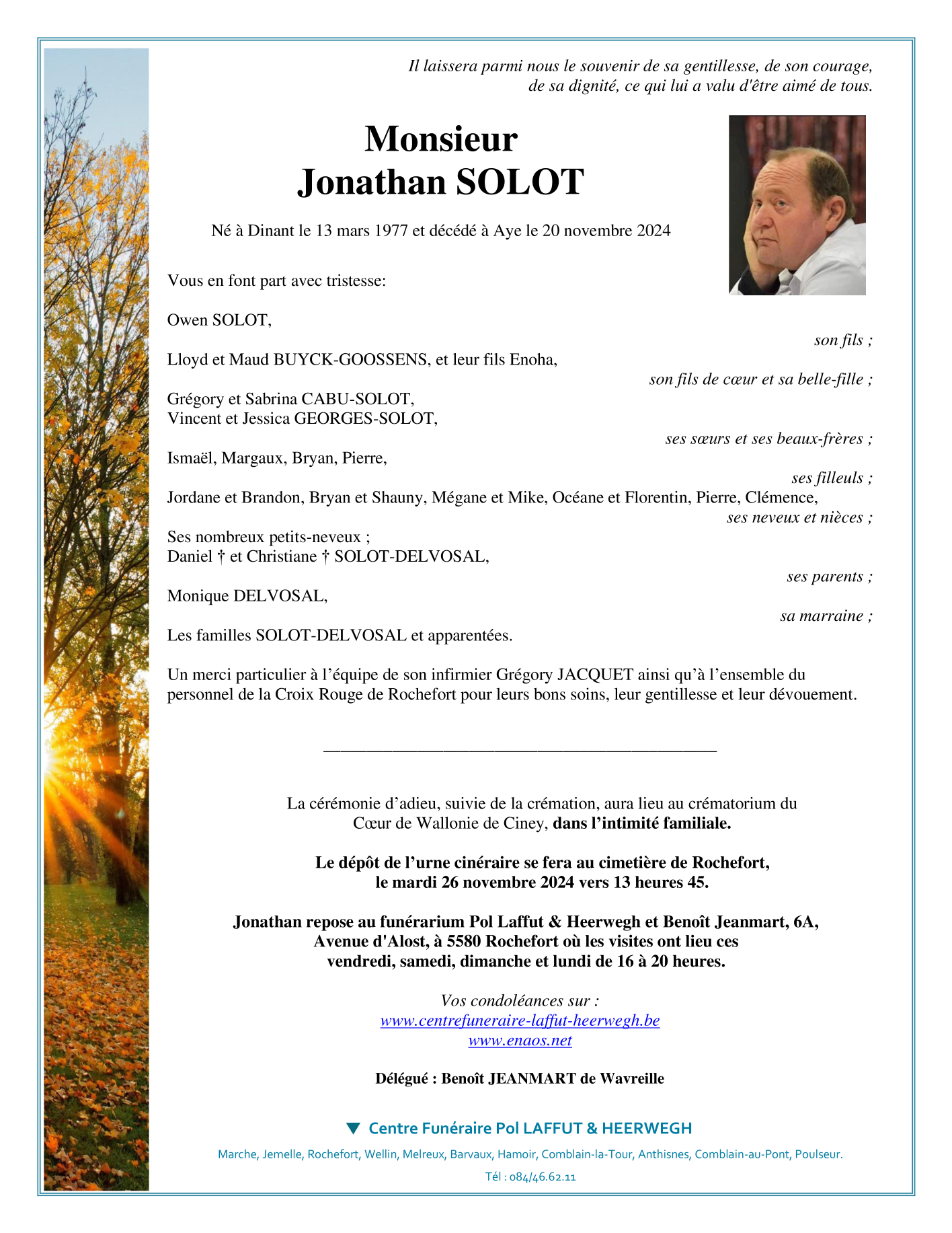 Décédé à Aye (6900) le mercredi 20 novembre 2024 à l'âge de 47 ans