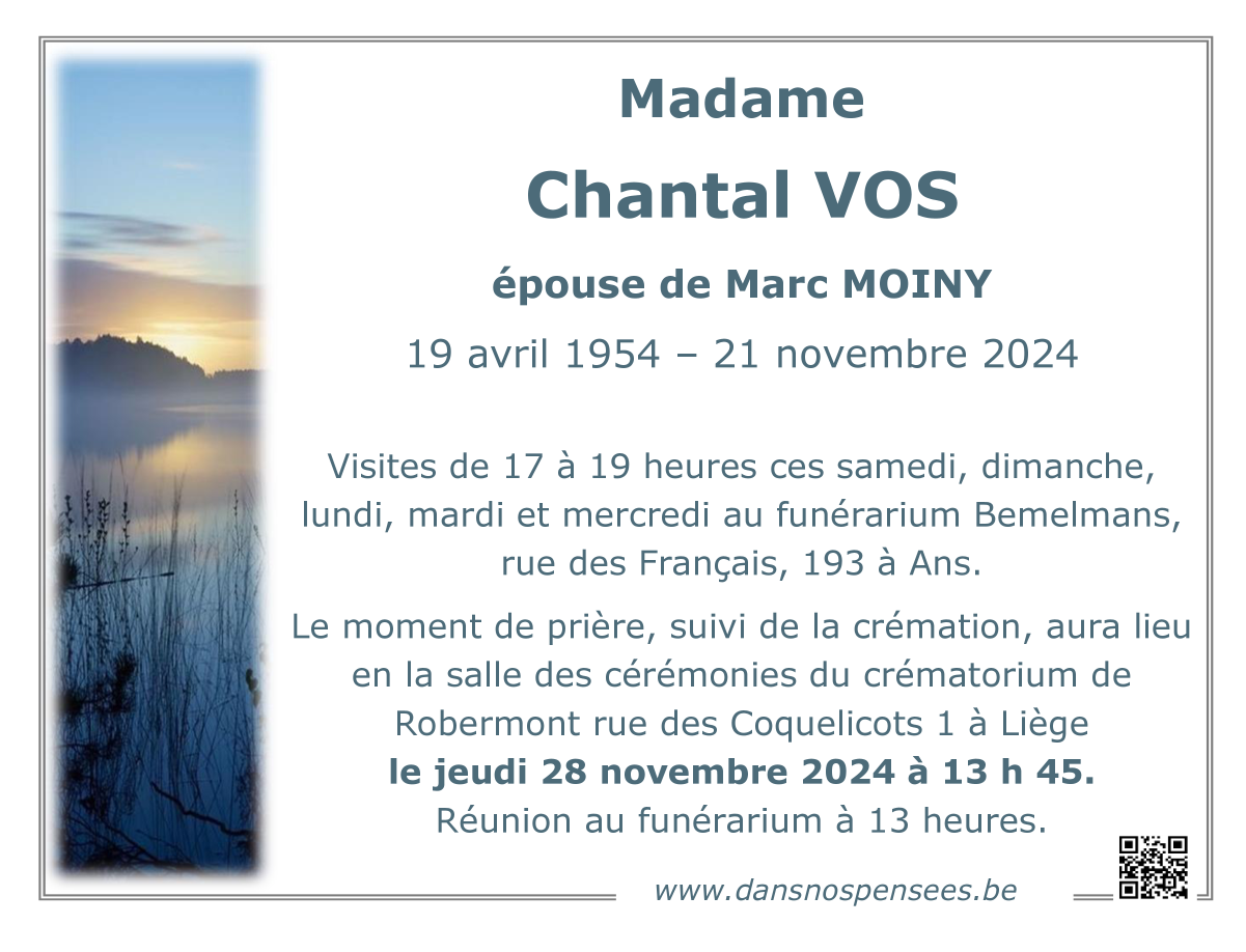 Décédée à Liège (4000) le jeudi 21 novembre 2024 à l'âge de 70 ans