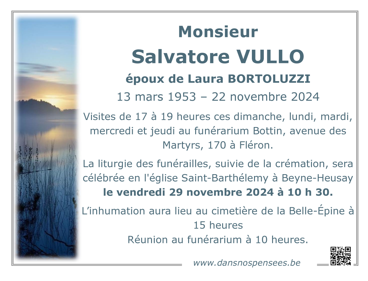 Décédé à Beyne-Heusay (4610) le vendredi 22 novembre 2024 à l'âge de 71 ans