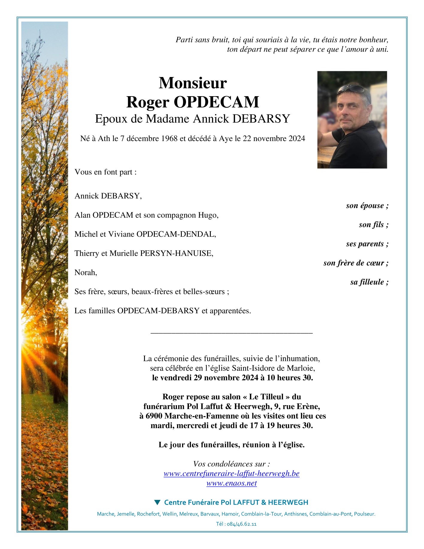 Décédé à Aye (6900) le vendredi 22 novembre 2024 à l'âge de 55 ans