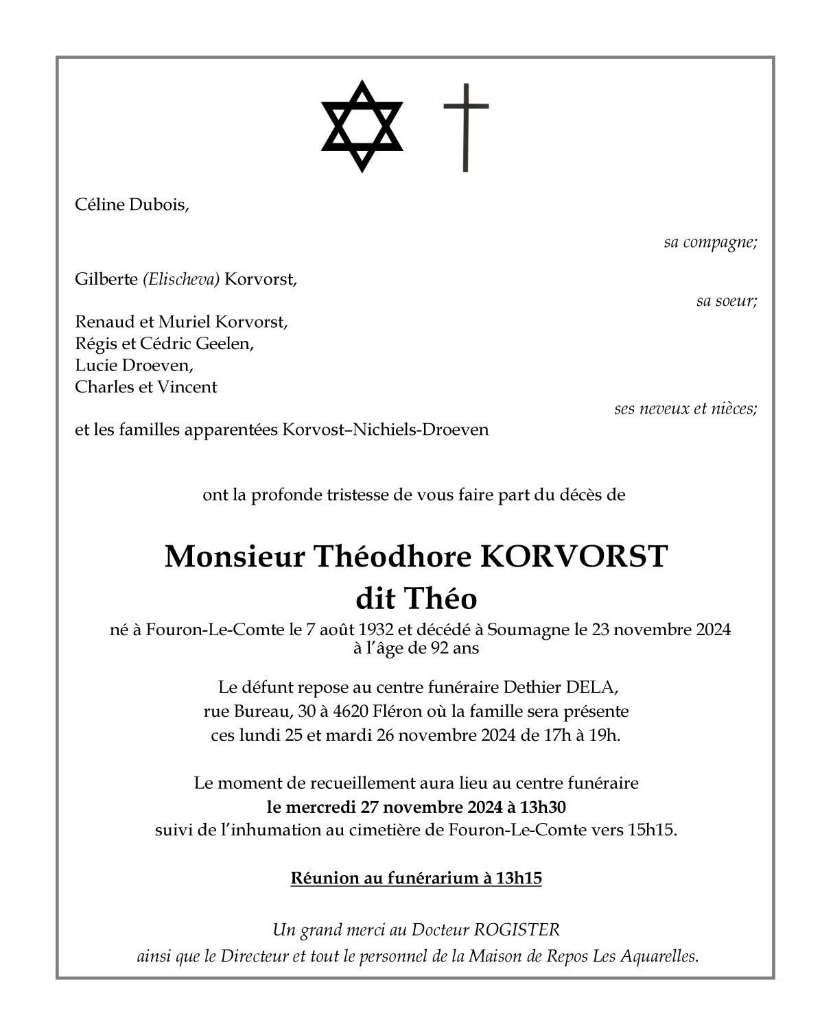 Décédé à Soumagne (4630) le samedi 23 novembre 2024 à l'âge de 92 ans