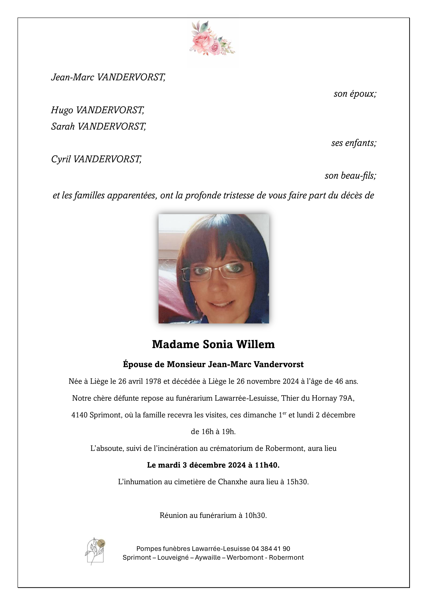 Décédée à Liège (4000) le mardi 26 novembre 2024 à l'âge de 46 ans