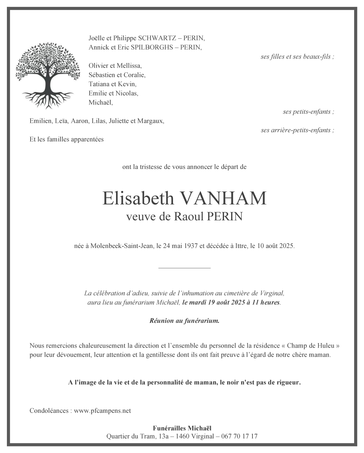 Veuve de Monsieur Raoul PERIN
