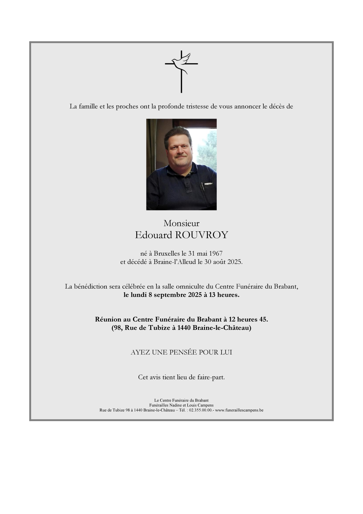 Décédé à Braine-l'Alleud (1420) le samedi 30 août 2025 à l'âge de 58 ans