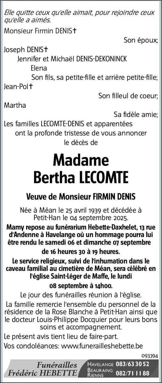 Died in Petit-Han (6940) on 04 September 2025 at the age of 86 years