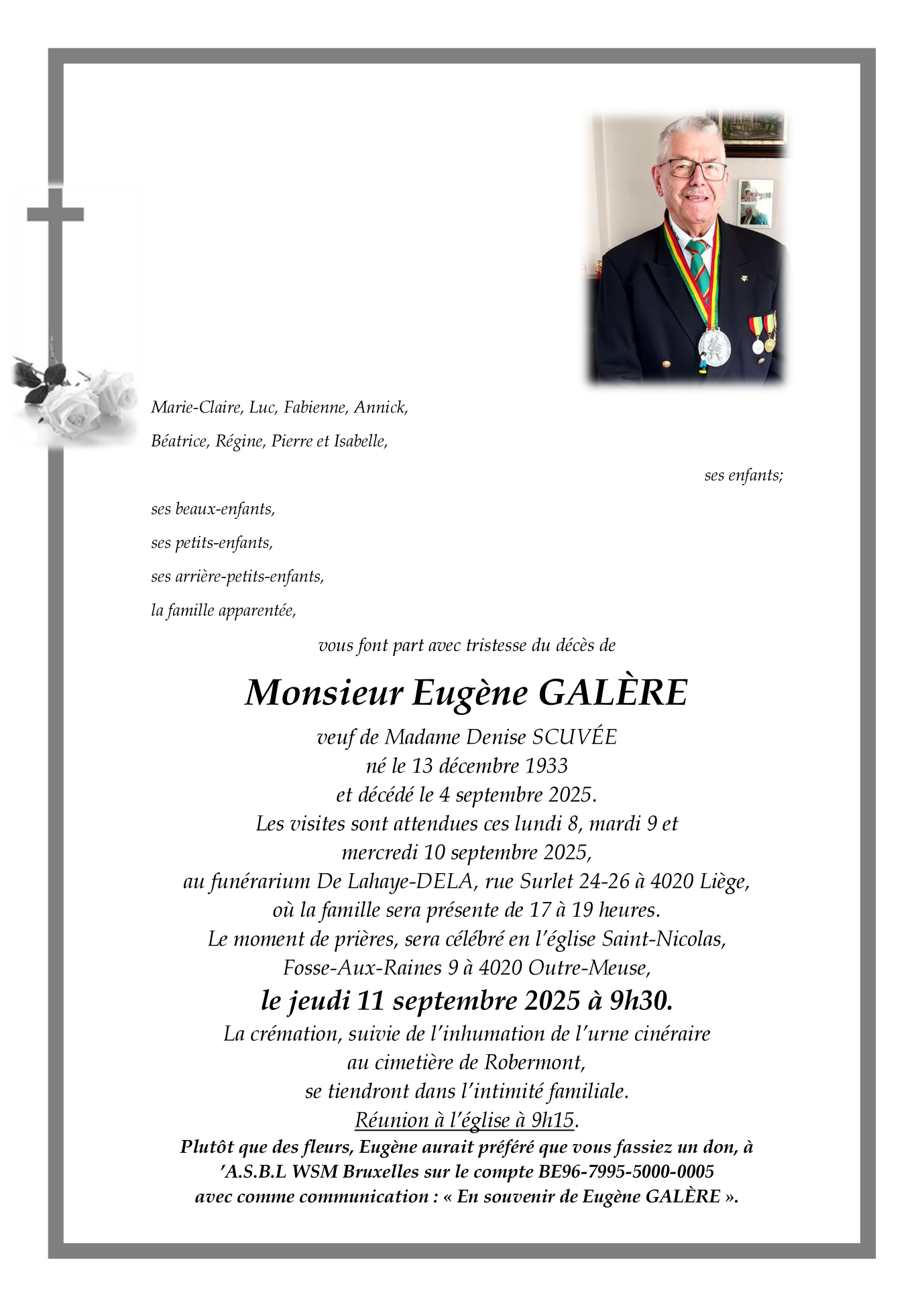 Fallecido en Grâce-Hollogne (4460) el jueves, 4 de septiembre de 2025 a la edad de 91 años