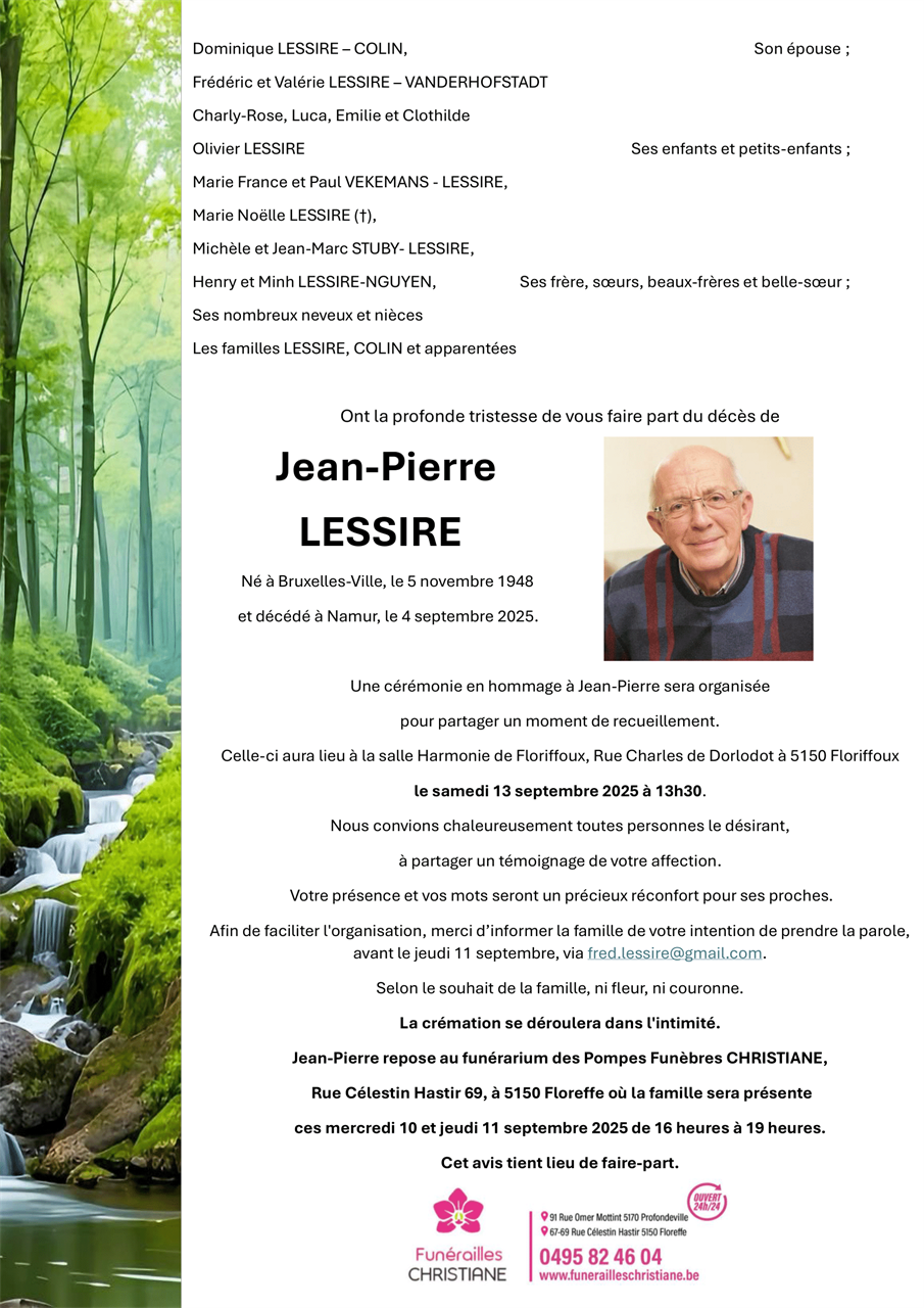 Décédé à Namur (5000) le jeudi 4 septembre 2025 à l'âge de 76 ans