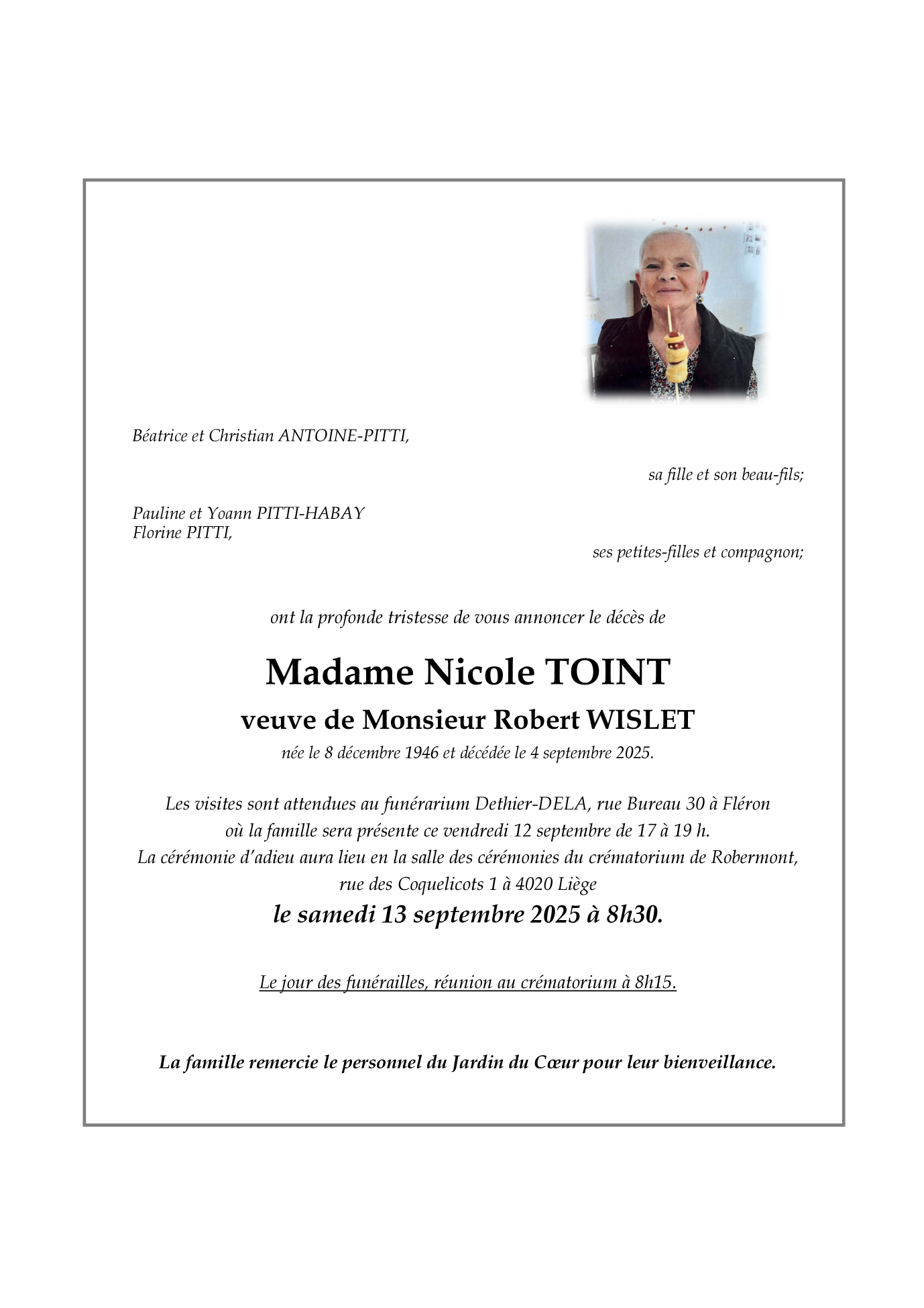 Veuve de Monsieur Robert WISLET