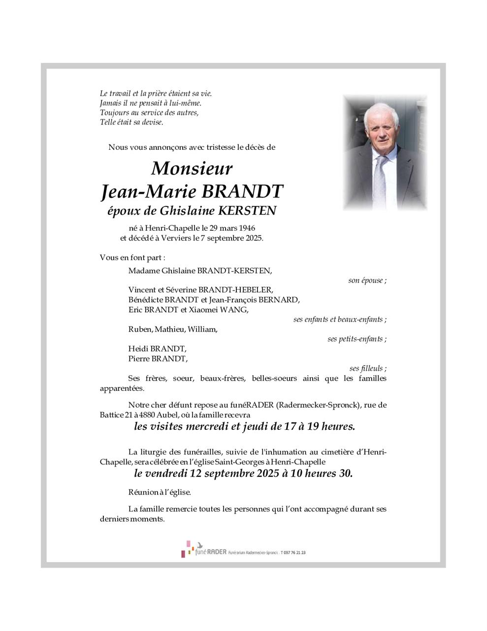 Décédé à Verviers (4800) le dimanche 7 septembre 2025 à l'âge de 79 ans