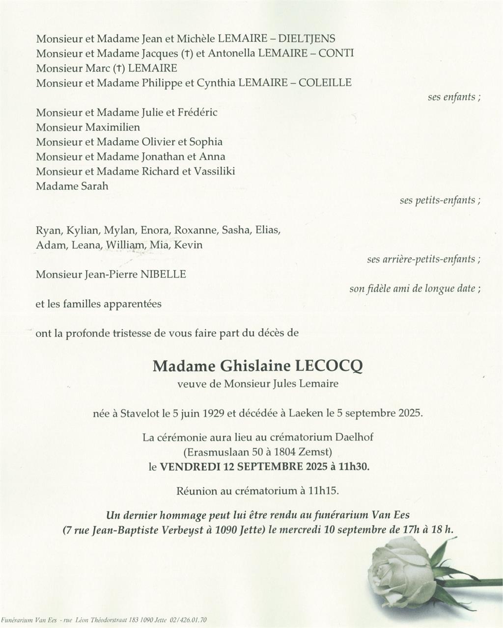 Décédée à Bruxelles (Laeken) (1020) le vendredi 5 septembre 2025 à l'âge de 96 ans