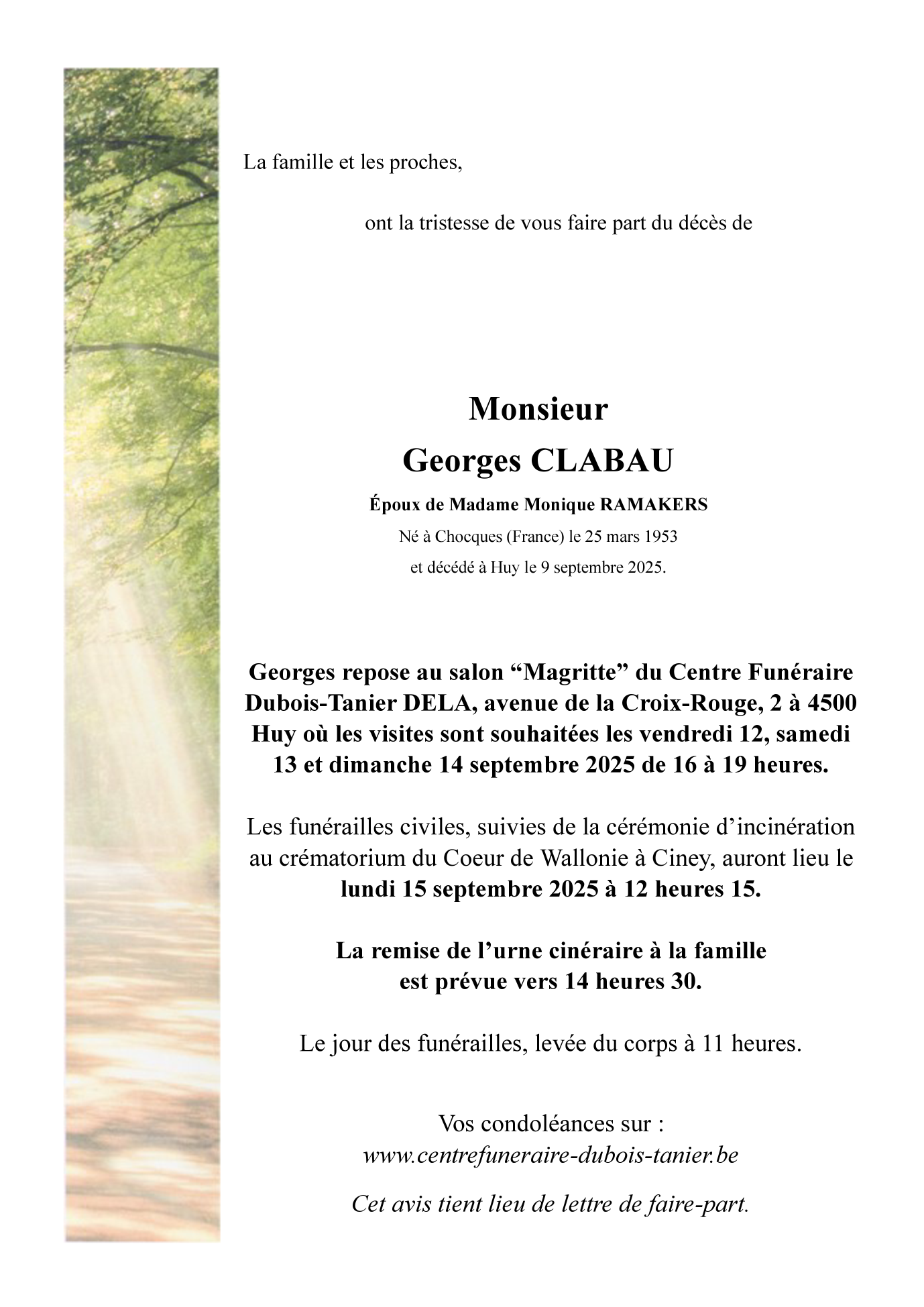 Fallecido en Huy (4500) el martes, 9 de septiembre de 2025 a la edad de 72 años