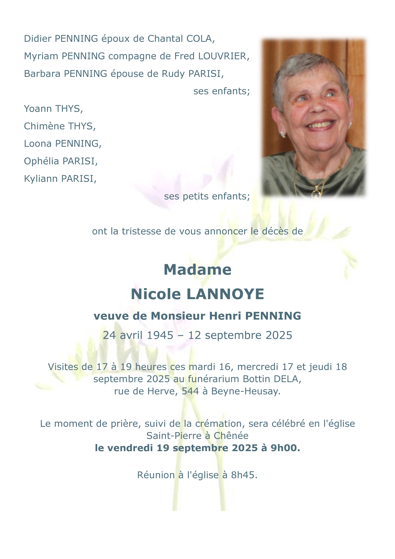 Décédée à Beyne-Heusay (4610) le vendredi 12 septembre 2025 à l'âge de 80 ans