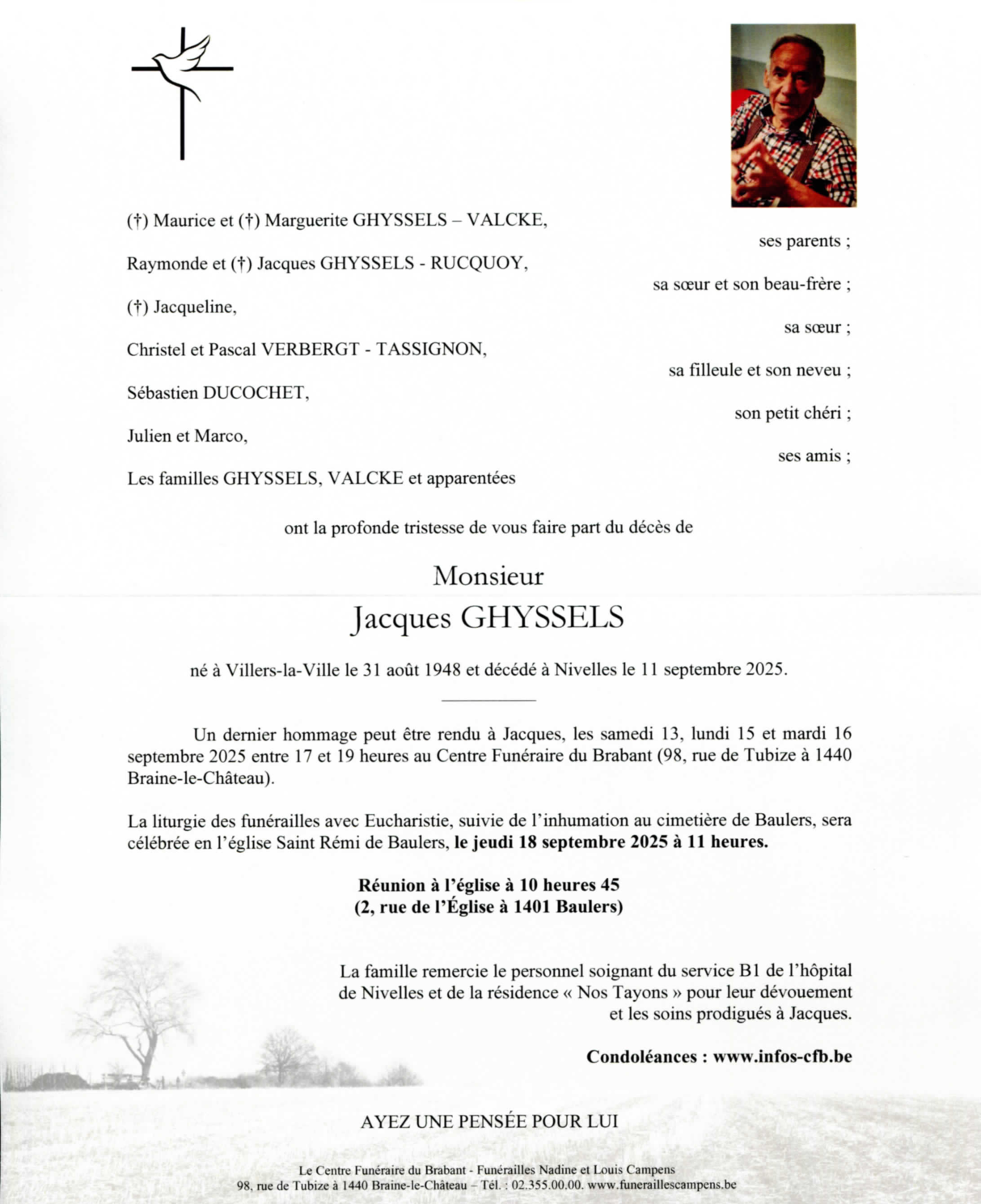 Décédé à Nivelles (1400) le jeudi 11 septembre 2025 à l'âge de 77 ans