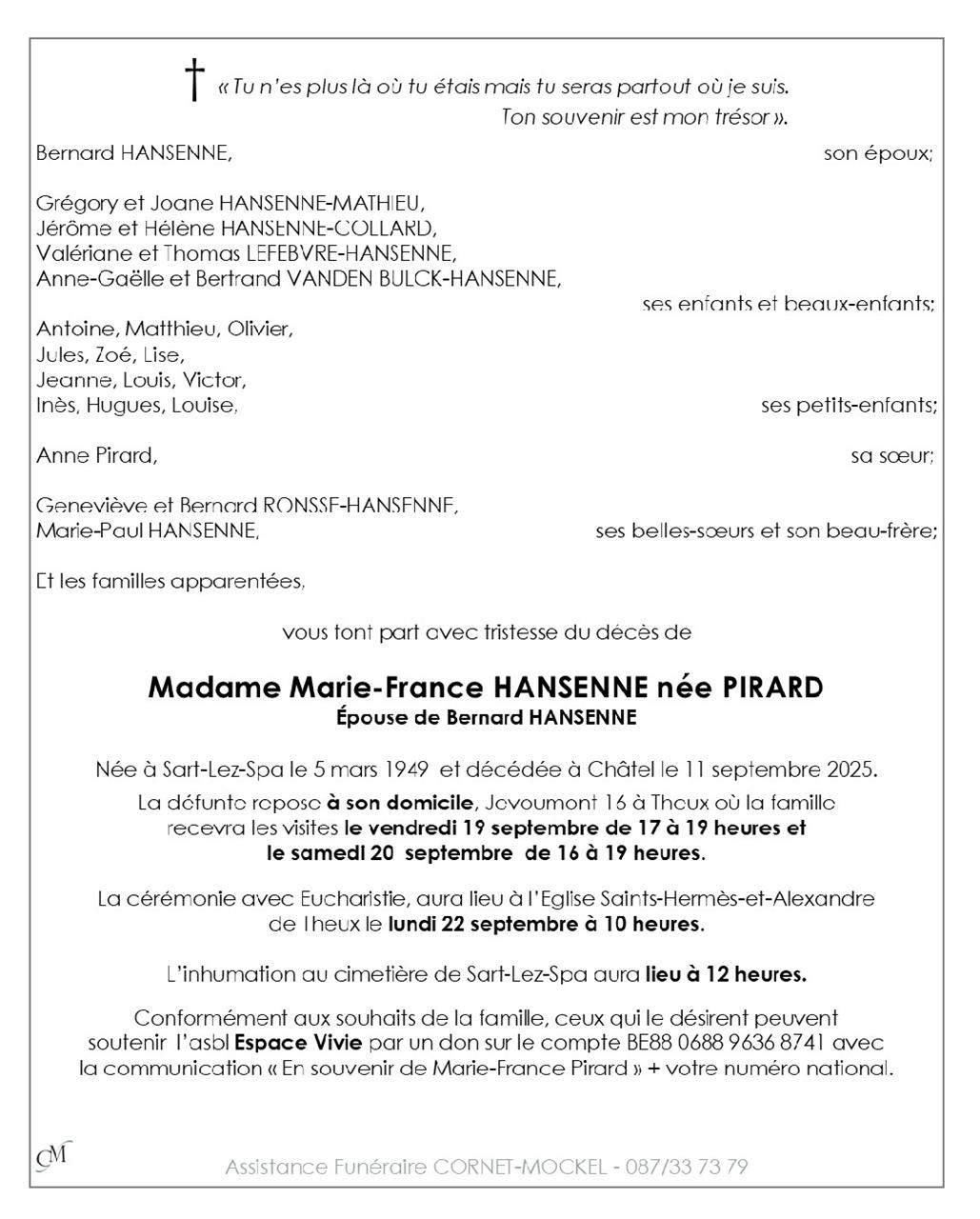 Died in « Localité inconnue » on 11 September 2025 at the age of 76 years
