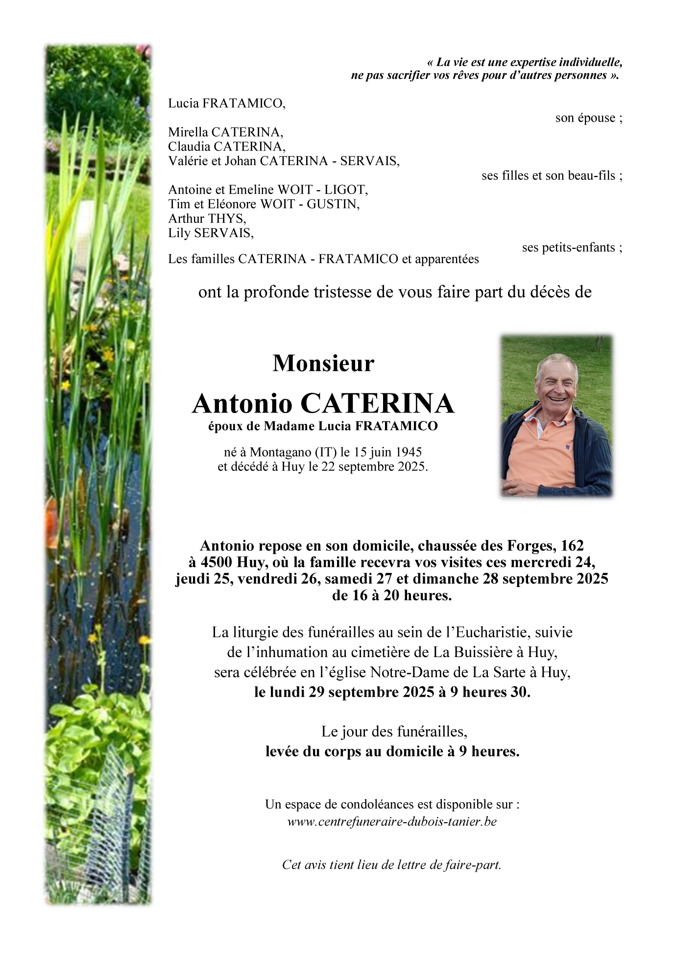 Fallecido en Huy (4500) el lunes, 22 de septiembre de 2025 a la edad de 80 años