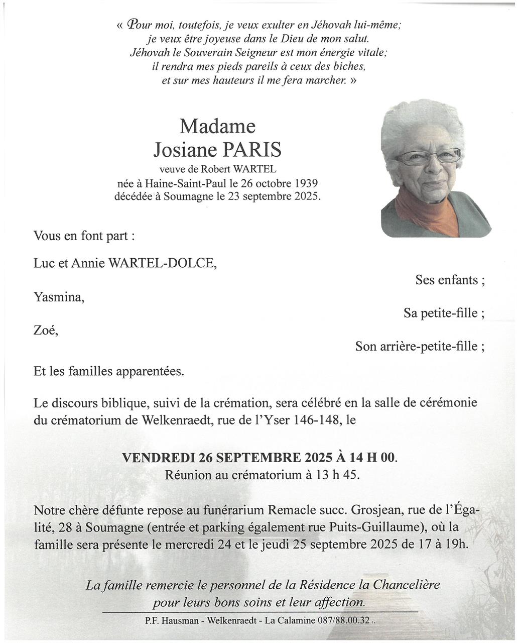 Veuve de Monsieur Robert WARTEL