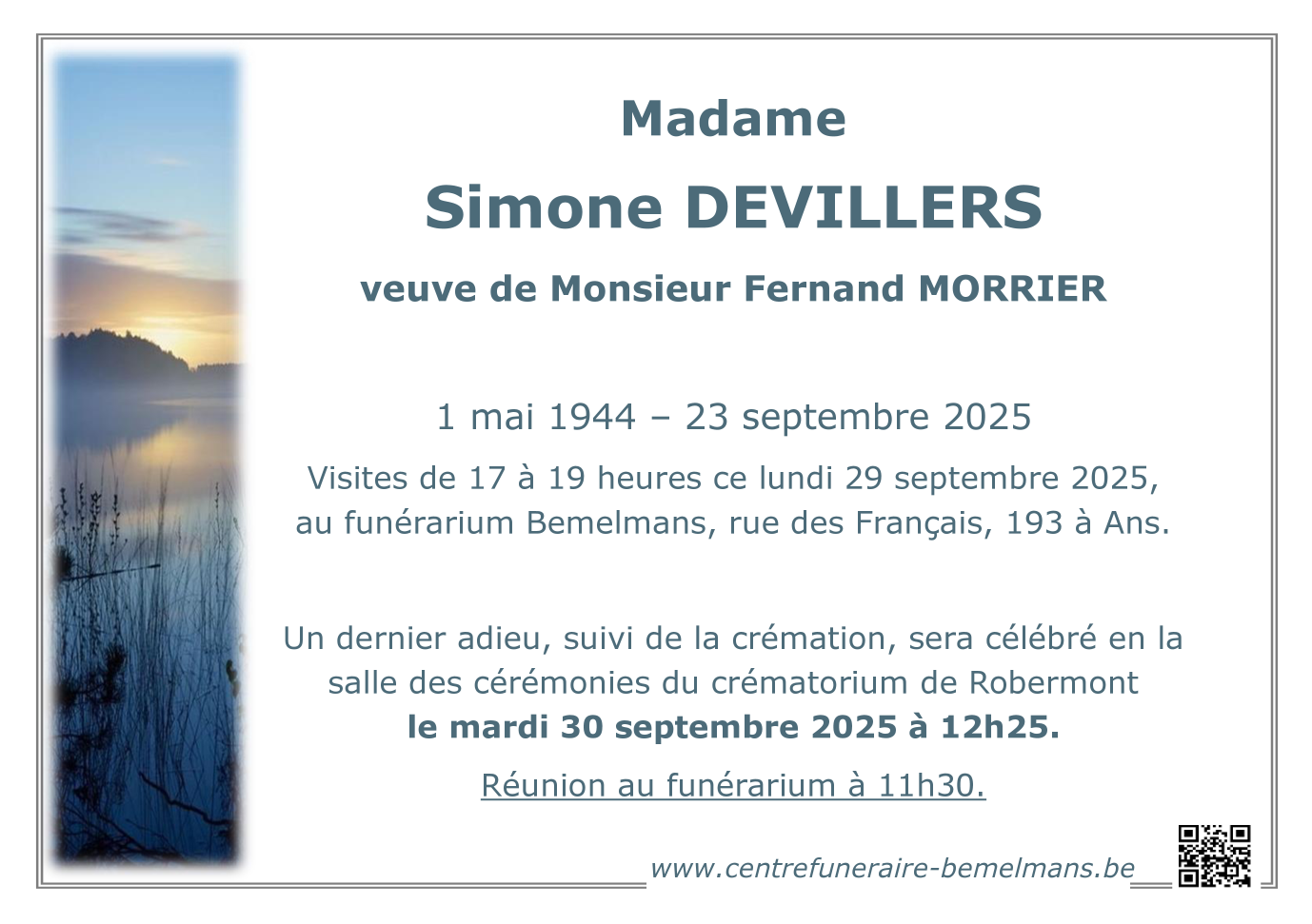Décédée à Liège (4000) le mardi 23 septembre 2025 à l'âge de 81 ans