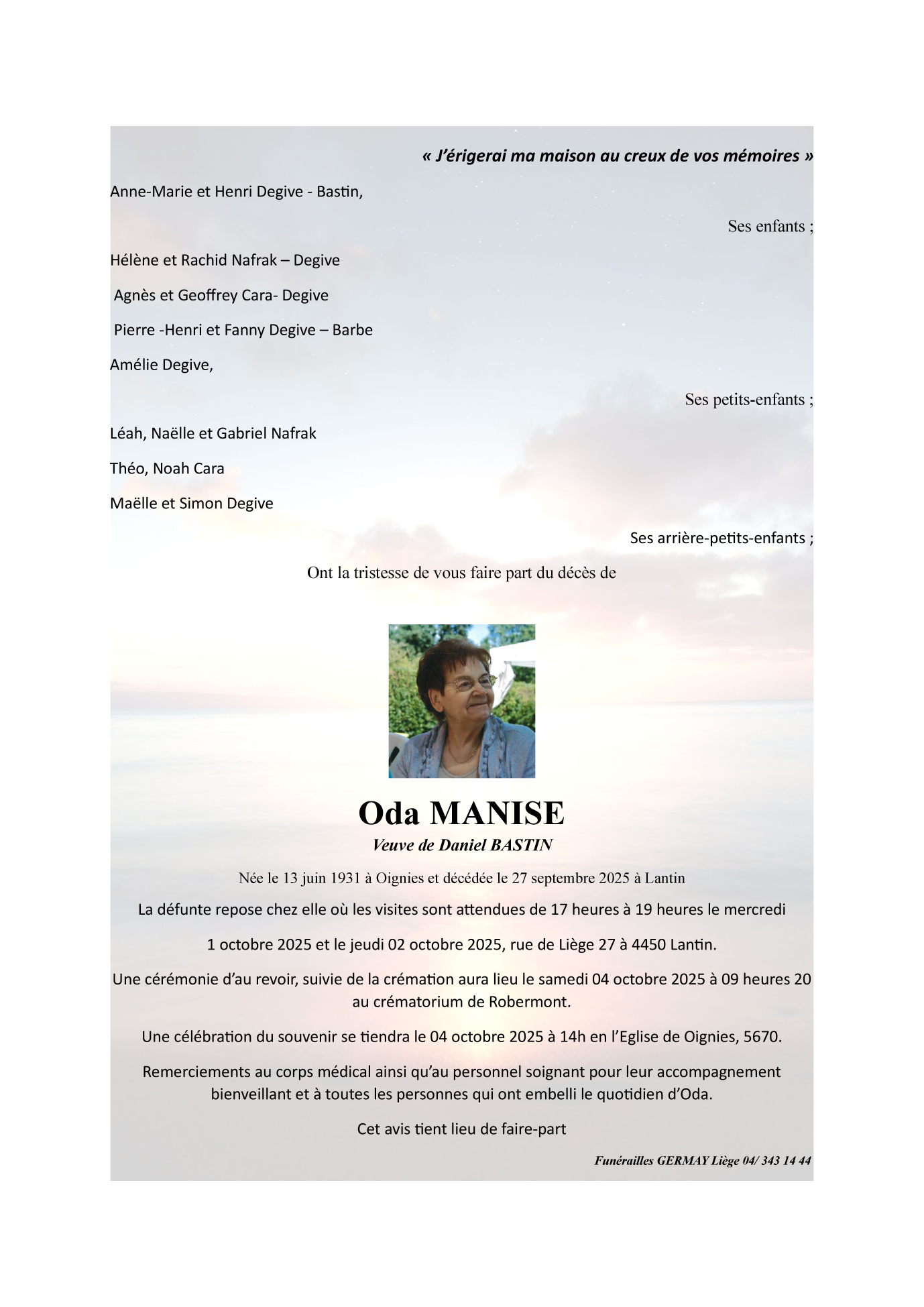 Died in Lantin (4450) on 27 September 2025 at the age of 94 years