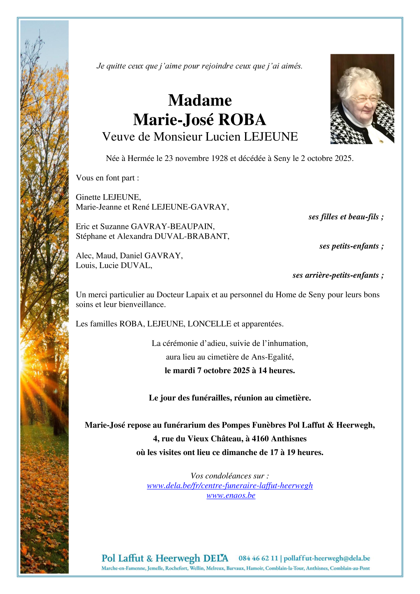 Overleden te Seny (4557) op donderdag 2 oktober 2025 op 96-jarige leeftijd