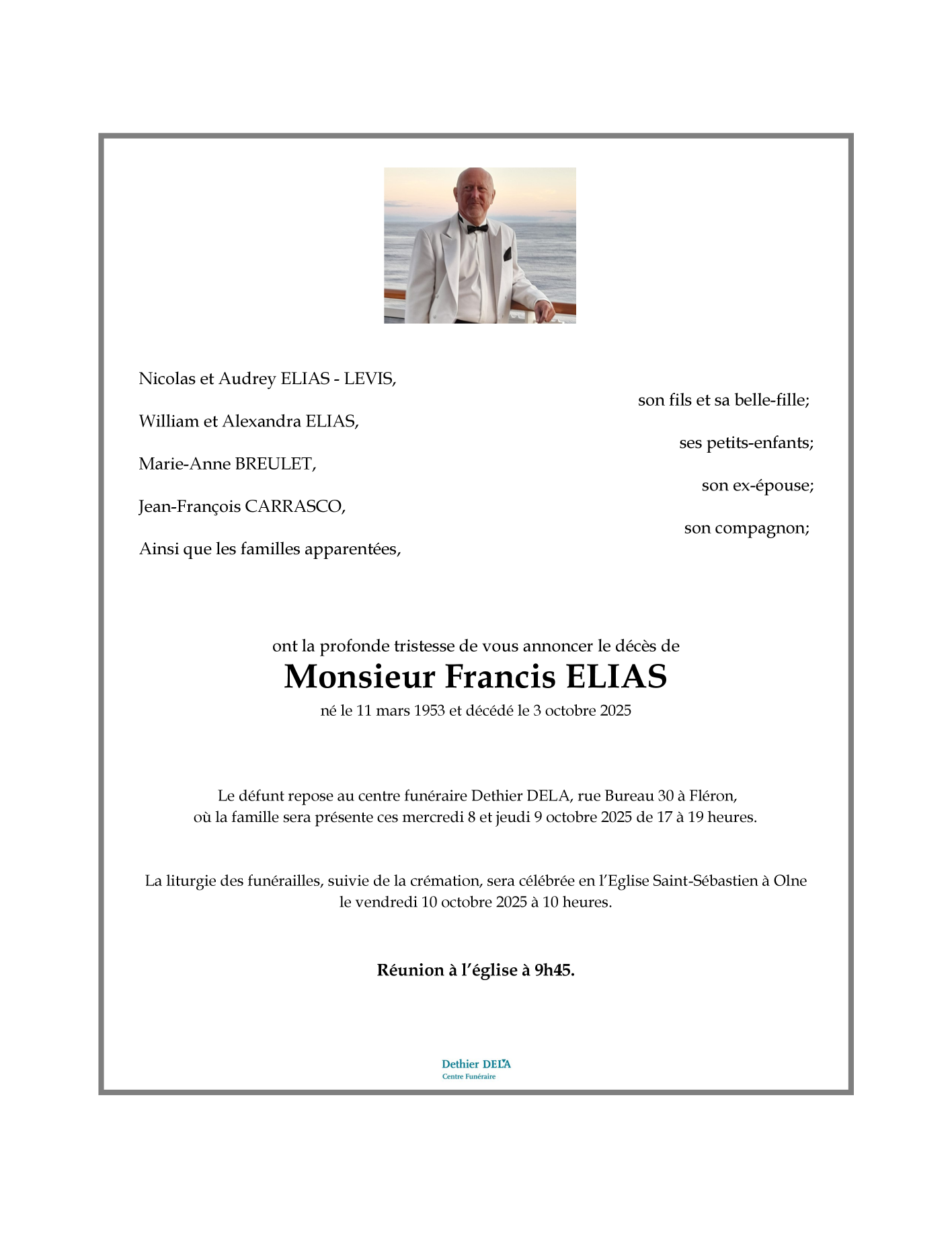 Décédé à Liège (4020) le vendredi 3 octobre 2025 à l'âge de 72 ans