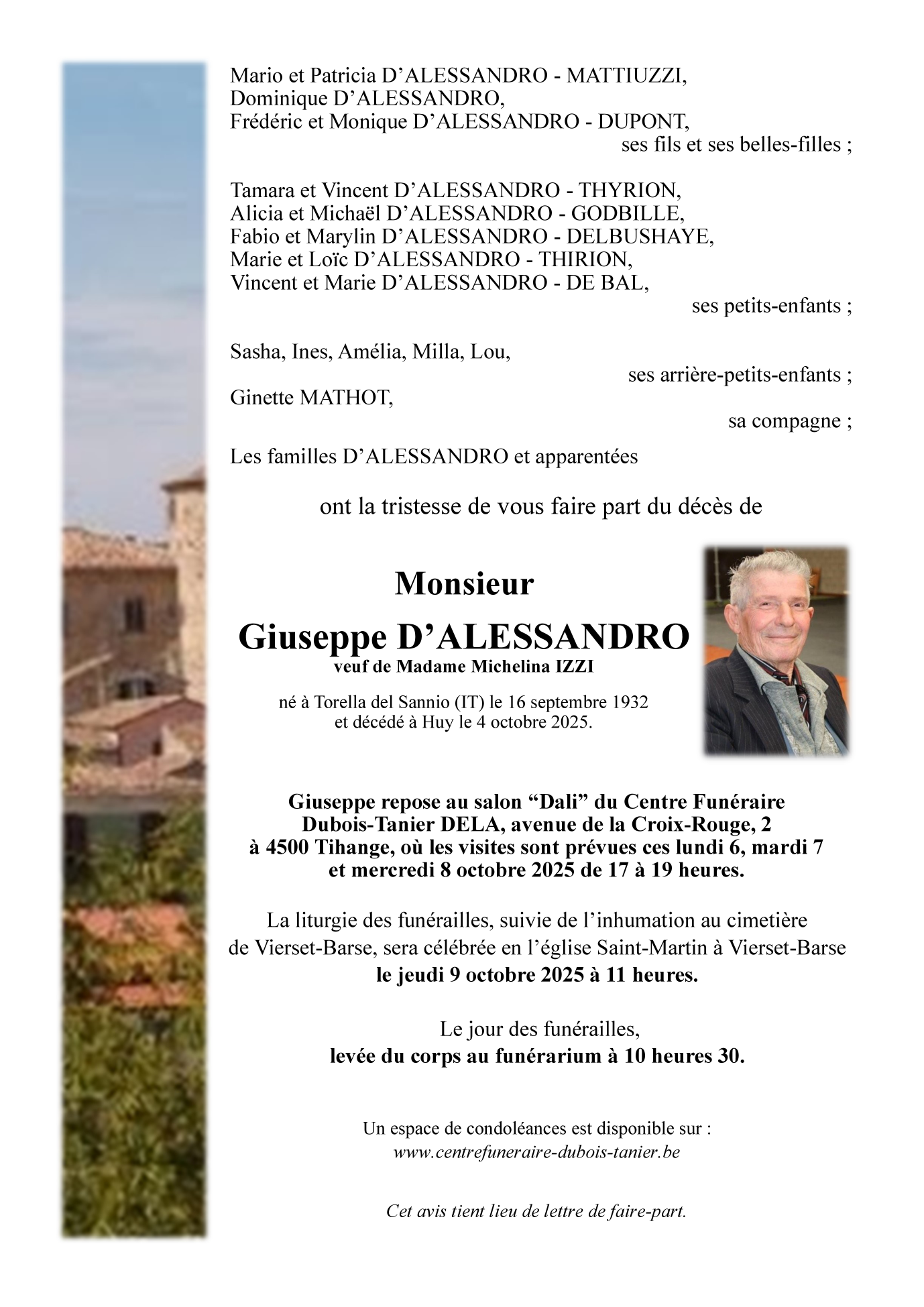 Décédé à Huy (4500) le samedi 4 octobre 2025 à l'âge de 93 ans