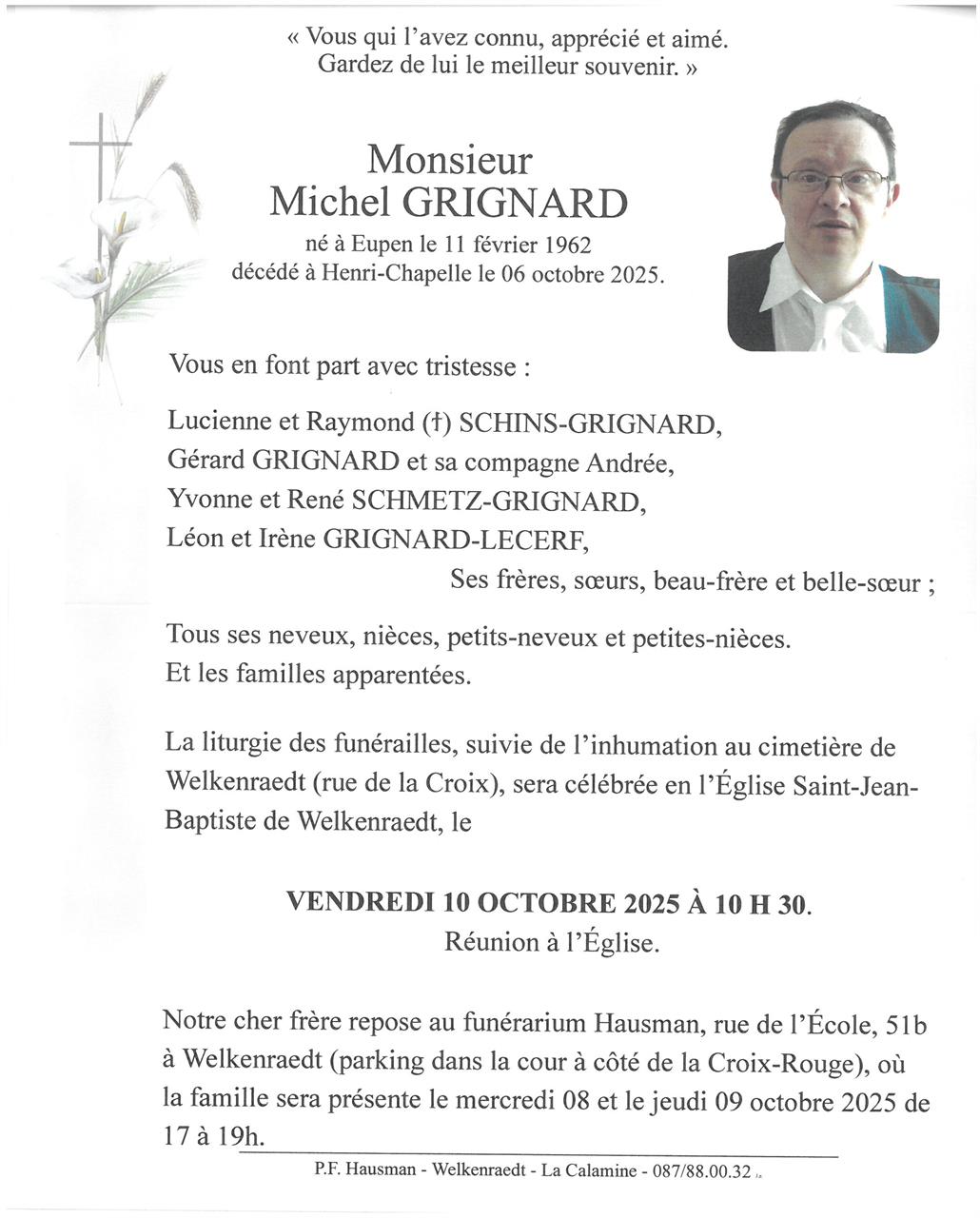 Died in Henri-Chapelle (4841) on 06 October 2025 at the age of 63 years