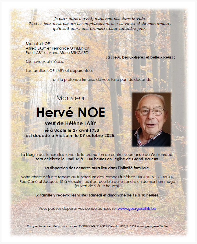 Décédé à Vielsalm (6690) le jeudi 9 octobre 2025 à l'âge de 87 ans
