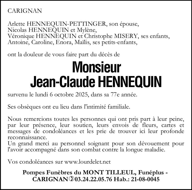 Décédé à Carignan (08110, France) le lundi 6 octobre 2025 à l'âge de 77 ans