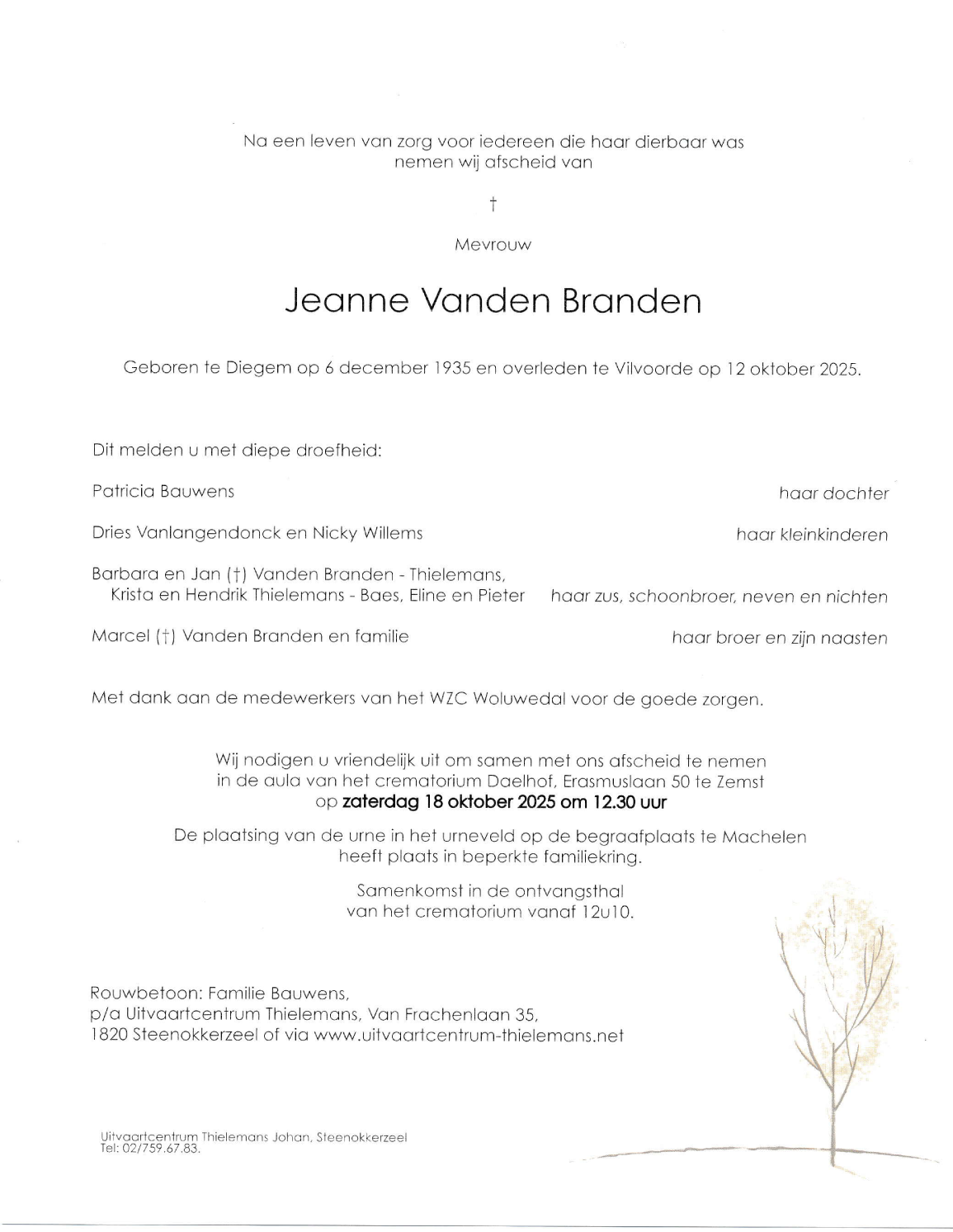 Décédée à Vilvoorde (1800) le dimanche 12 octobre 2025 à l'âge de 89 ans