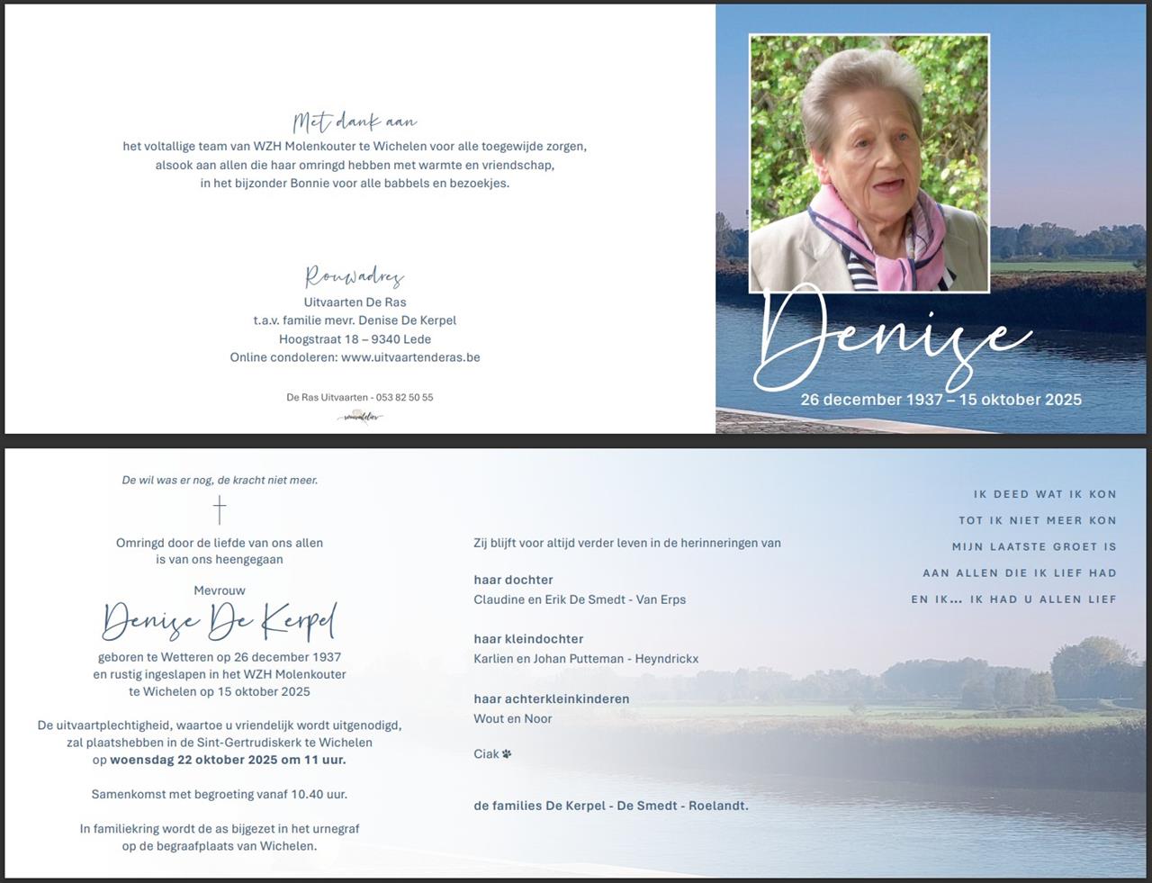 Décédée à Wichelen (9260) le mercredi 15 octobre 2025 à l'âge de 87 ans
