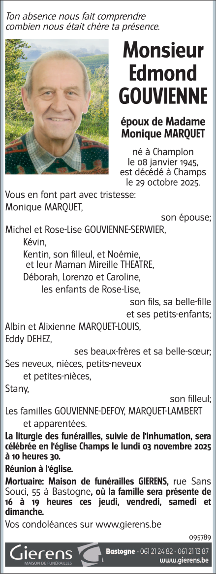 Décédé à Bertogne (6687) le mercredi 29 octobre 2025 à l'âge de 80 ans