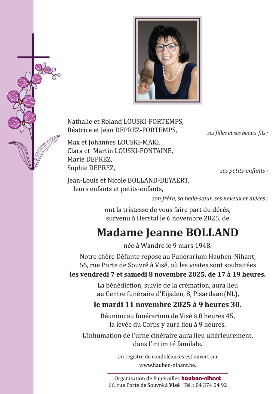 Décédée à Herstal (4040) le jeudi 6 novembre 2025 à l'âge de 77 ans