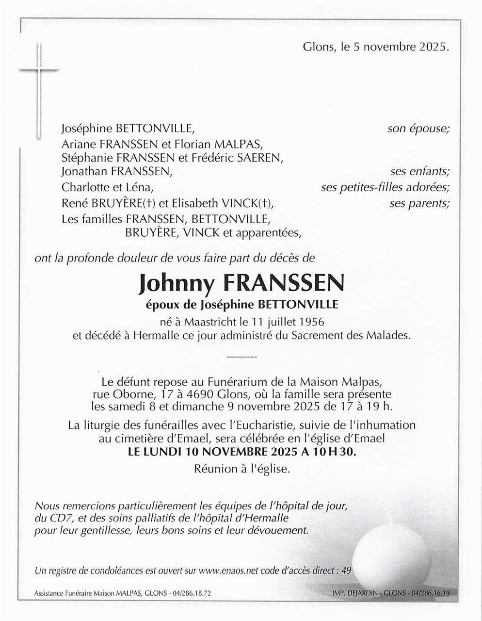 Décédé à Hermalle-sous-Argenteau (4681) le mercredi 5 novembre 2025 à l'âge de 69 ans