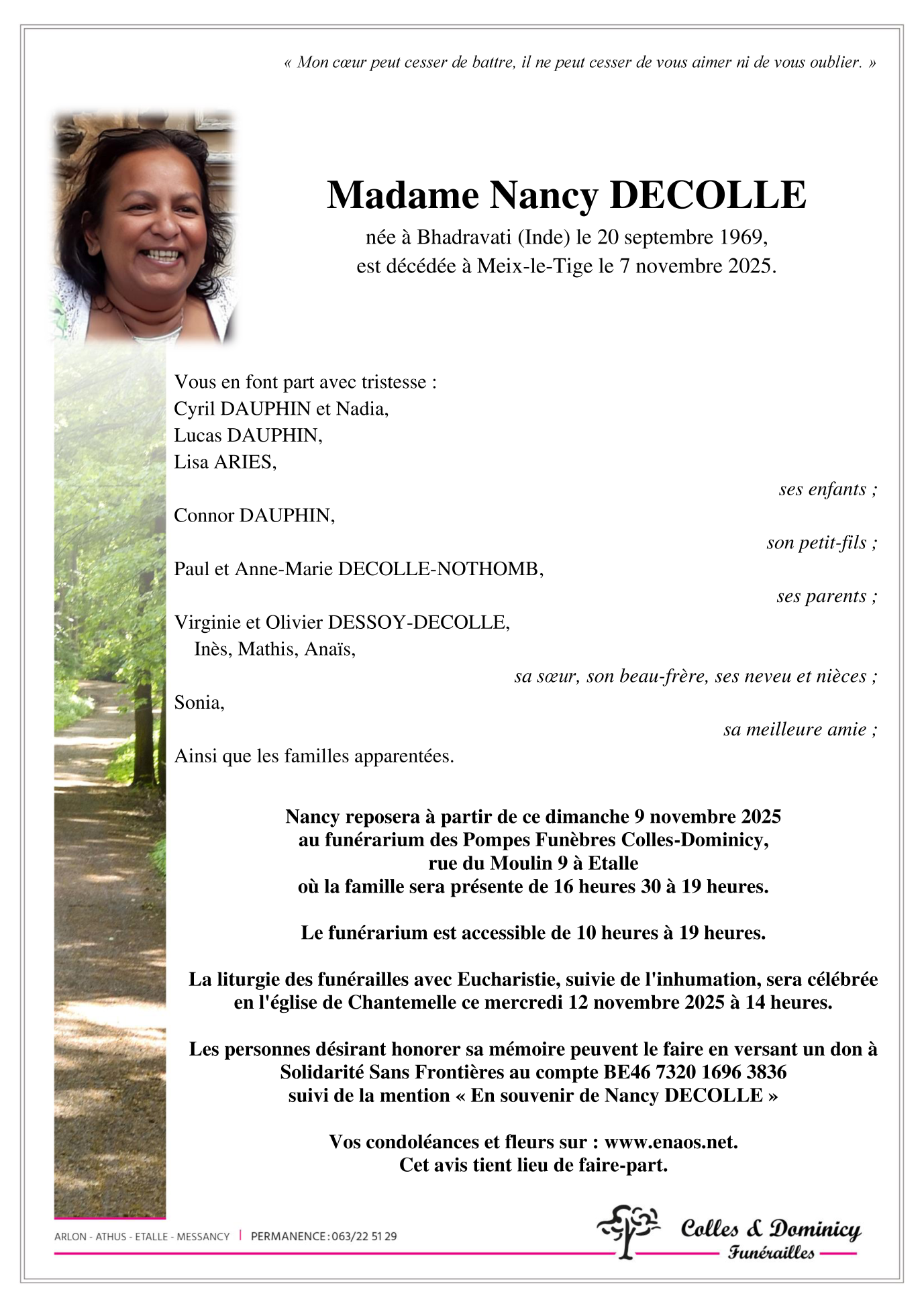 Décédée à Meix-le-Tige (6747) le vendredi 7 novembre 2025 à l'âge de 56 ans
