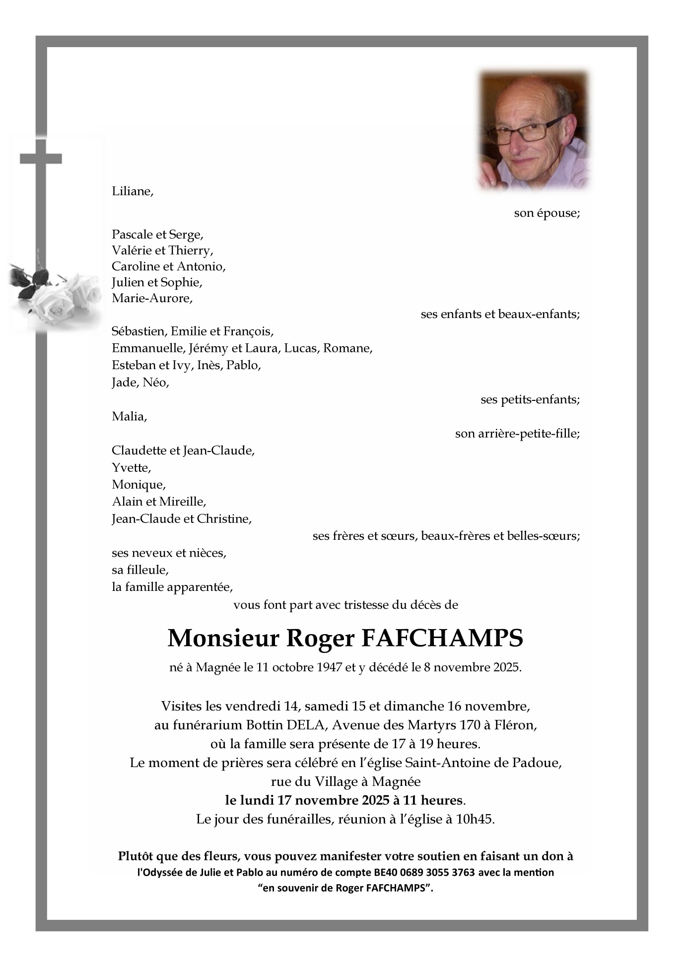 Décédé à Magnée (4623) le samedi 8 novembre 2025 à l'âge de 78 ans