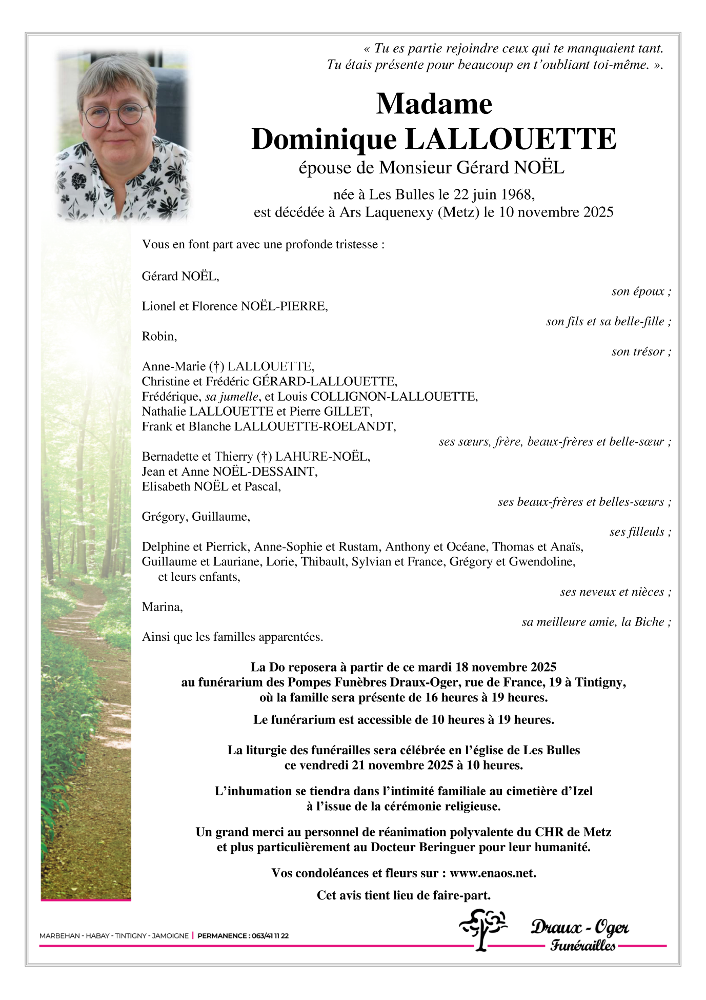 Décédée à Ars-Laquenexy (57530, France) le lundi 17 novembre 2025 à l'âge de 57 ans