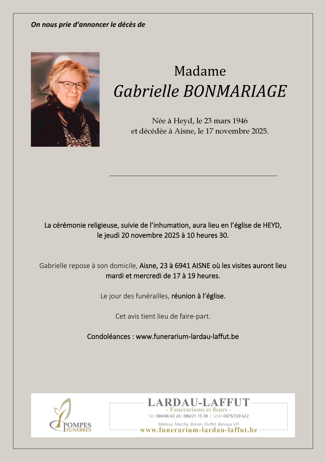 Overleden te Aisne (6941) op maandag 17 november 2025 op 79-jarige leeftijd