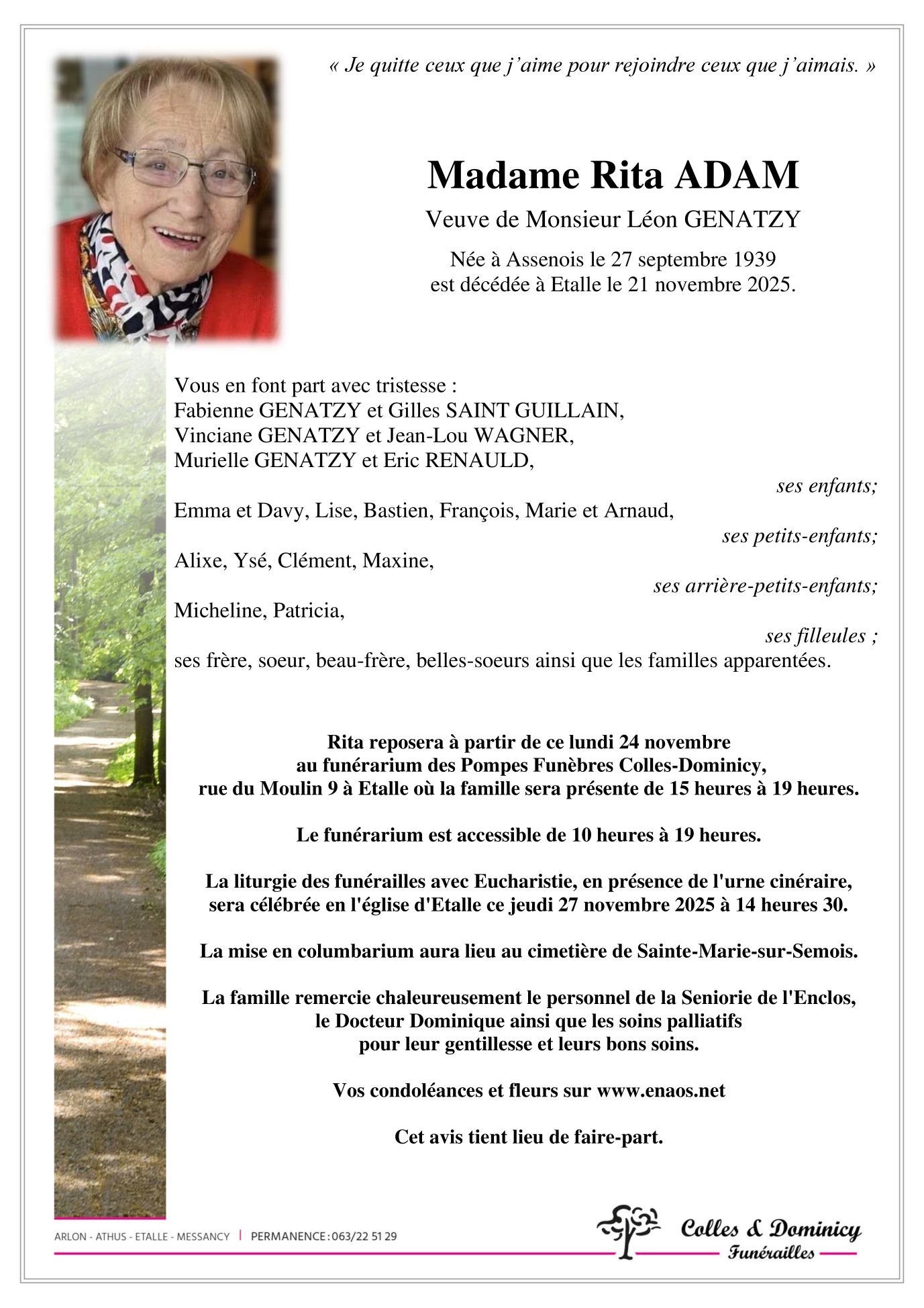 Overleden te Etalle (6740) op vrijdag 21 november 2025 op 86-jarige leeftijd