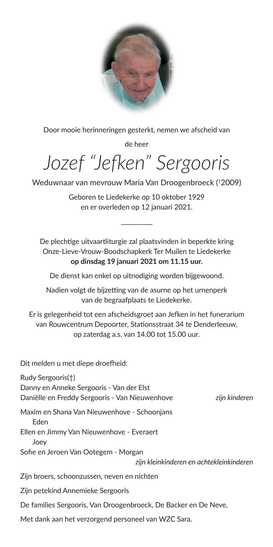 Décédé à Liedekerke (1770) le mardi 12 janvier 2021 à l'âge de 91 ans
